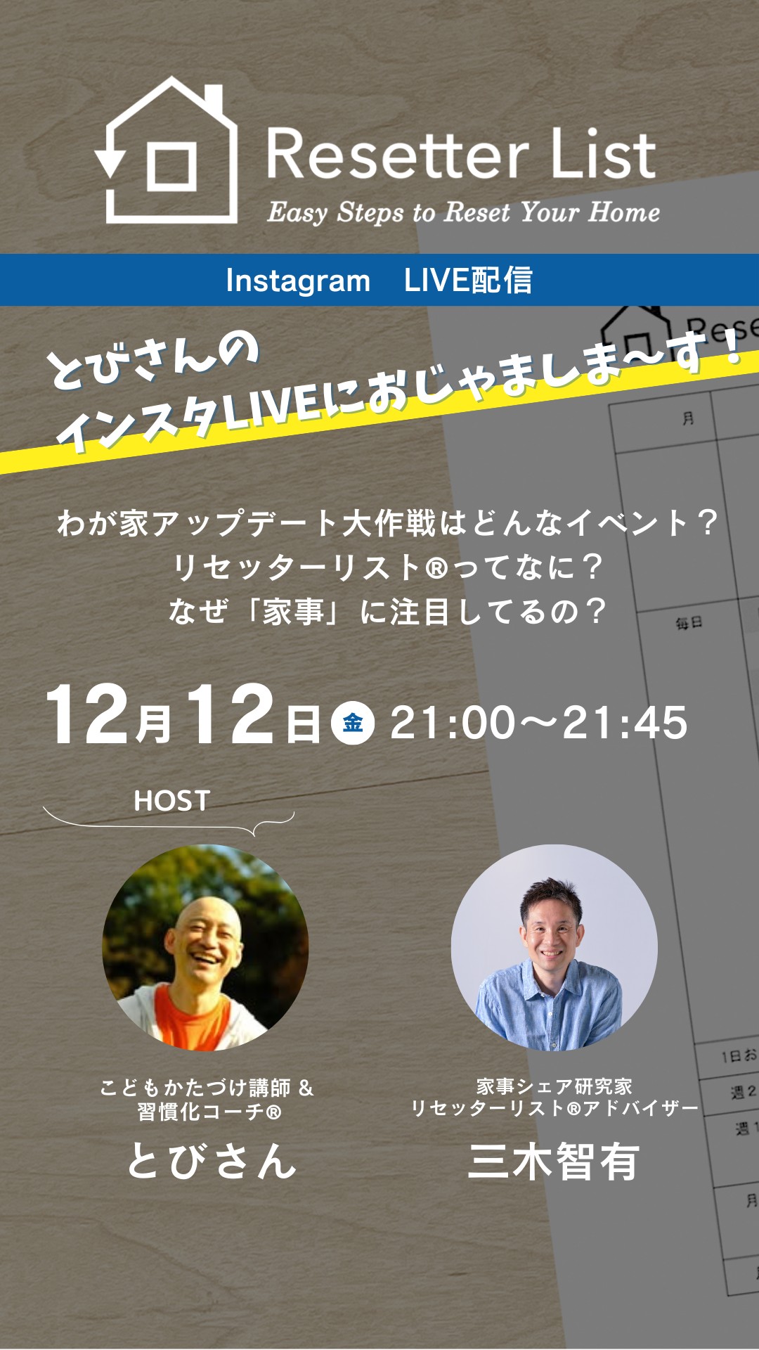 イベントに向けて、リセッターリスト®や家事についてなどとびさんと色々とお話するので、ぜひそちらもご覧ください!