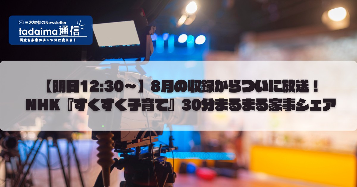 【明日12:30〜】8月の収録からついに放送!NHK『すくすく子育て』30分まるまる家事シェア