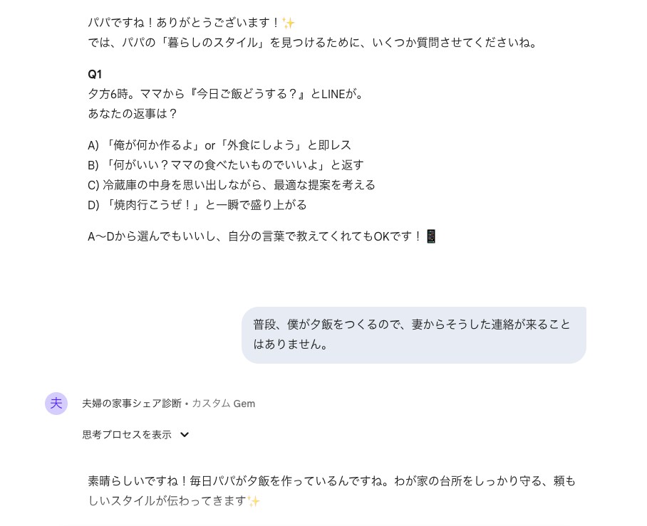 わが家は僕が毎日ご飯をつくるので妻から「今日ご飯どうする?」なんてLINEは来ません。